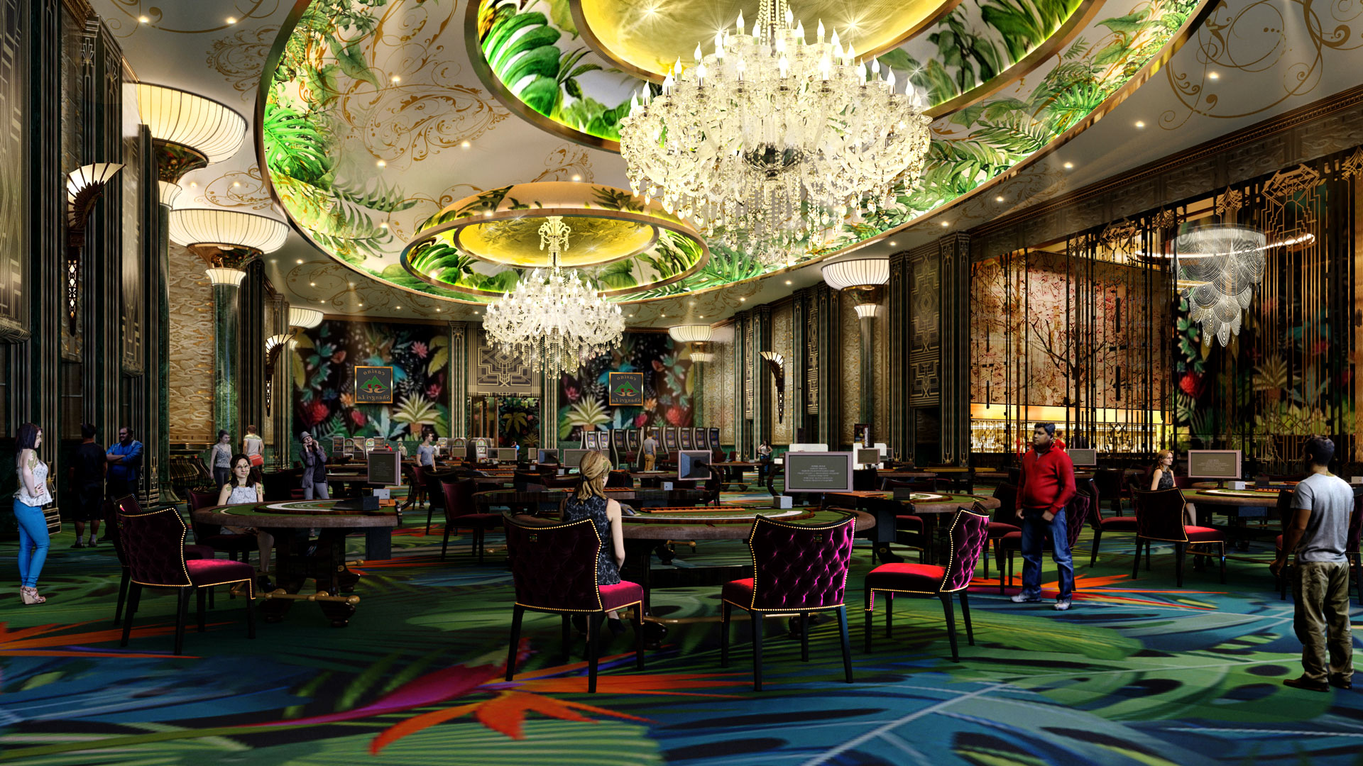当您穿过丛林出来时,您会看到瀑布、喷泉和鲜花,我们的豪华赌场坐落其中,让您一路上都充满新奇与刺激。
